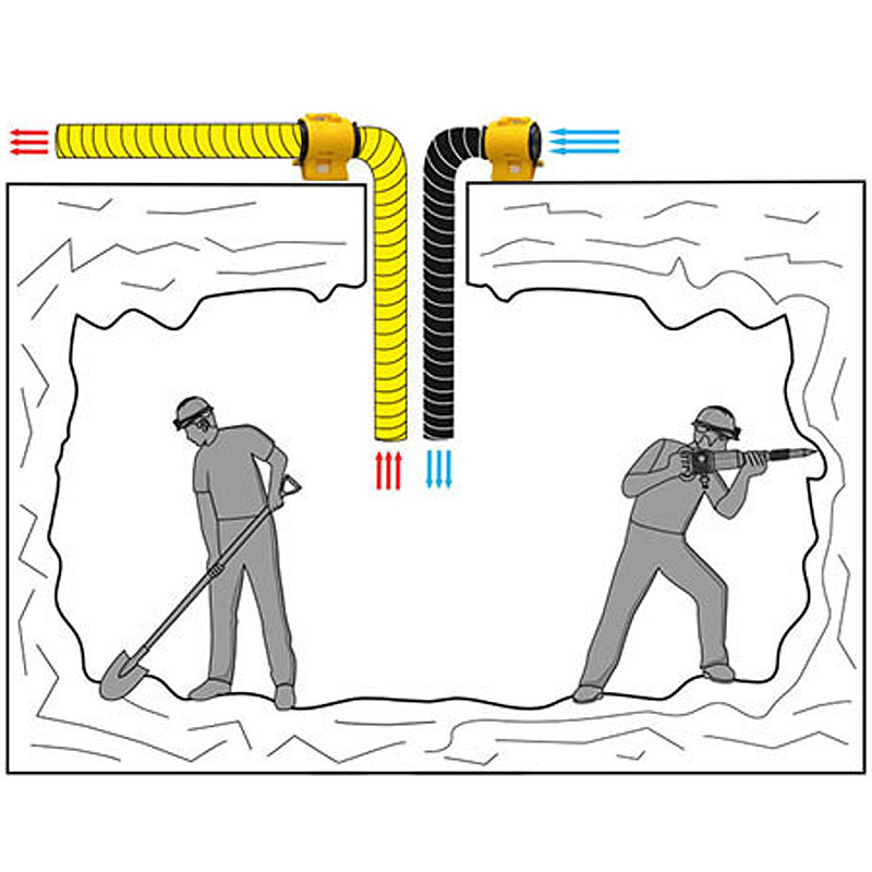 Pe absorbtie si/sau pe refulare pot fi montate tubulaturi flexibile pentru transportul aerului proapspat sau viciat; se recomanda ca aceste tubulaturi sa nu depaseasca 15m pentru a putea pastra caracteristicile de debit ale ventilatorului (se pot monta 15m de tubulatura fie pe absorbtie, fie pe refulare, fie cumulat absorbtie + refulare)